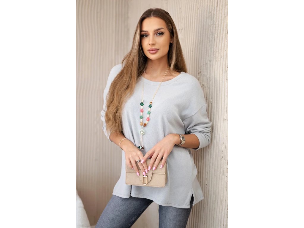 Blúzka s náhrdelníkom je návrh, ktorý spája jednoduchosť s nádychom sofistikovaného štýlu. Vyrobená z vysoko kvalitného materiálu, zaručuje pohodlie pri nosení a dokonalé prispôsobenie postave. Jej klasický strih ju robí ideálnou na každodenné nosenie aj na formálnejšie príležitosti. Výrazným prvkom tejto blúzky je náhrdelník, ktorý dodáva celkovému vzhľadu jemnú eleganciu. Vďaka nemu je outfit kompletný a nevyžaduje ďalšie doplnky. Je to praktické riešenie pre ženy, ktoré si cenia minimalistický štýl s výrazným akcentom. Blúzka sa výborne hodí k nohaviciam aj sukniam a vytvára univerzálne outfity na každé ročné obdobie. Vyberte si ju, ak vám záleží na spojení pohodlia, elegancie a originálneho dizajnu. Veľkosť je univerzálna a hodí sa pre ženy, ktoré nosia veľkosti S, M, L.