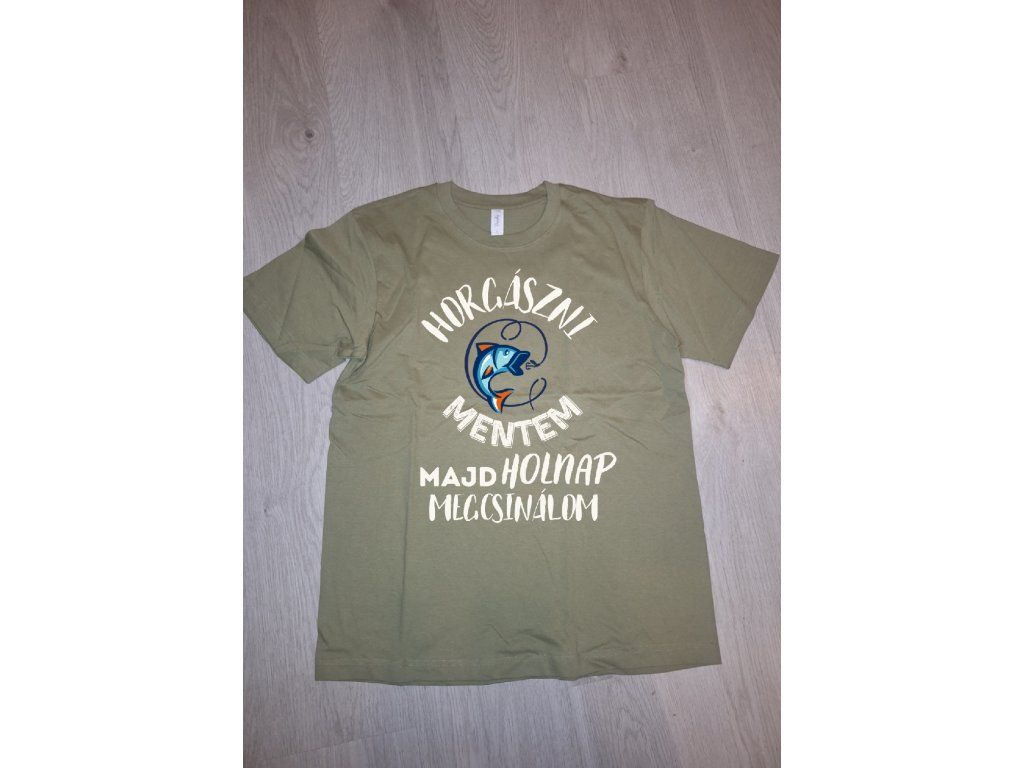 Stílusos férfi póló magyar felirattal és horgász grafikával.